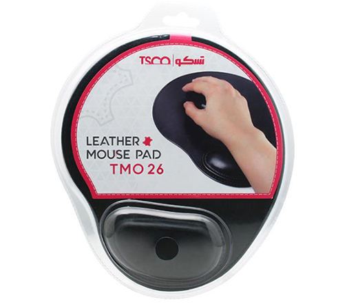 ماوس پد مدل (TMO 26) یکی از تولیدات برند تسکو می باشد که با ساختار ظاهری به ابعاد (250x212x25) میلی متر و تنها با 400 گرم وزن از جنس فوم چرم با لبههای دوردوخت با خاصیت ضد آب و قابل شست وشو طراحی و تولید شده است و بر روی آن استراحتگاه ژله ای نیز تعبیه شده تا کاربر به راحتی با ماوس حرکت کند.