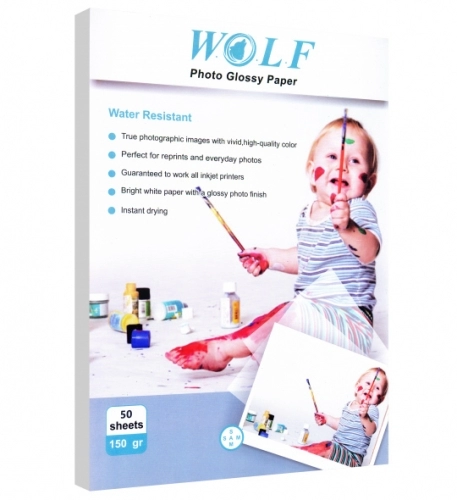 کاغذ فتوگلاسه ولف سایز A3 با بهره مندی از ویژگی هایی همچون ضد آب و لکه، خشکی سریع، شفافیت بالا و همچنین قابلیت چاپ تصاویر و عکس با وضوح حداکثر (4880) dpi، با تمامی پرینترهای جوهرافشان سازگاری کامل داشته و با توجه به تعداد در محتوای بسته و کیفیت، از نظر اقتصادی و قیمت بسیار مقرون به صرفه می باشد.