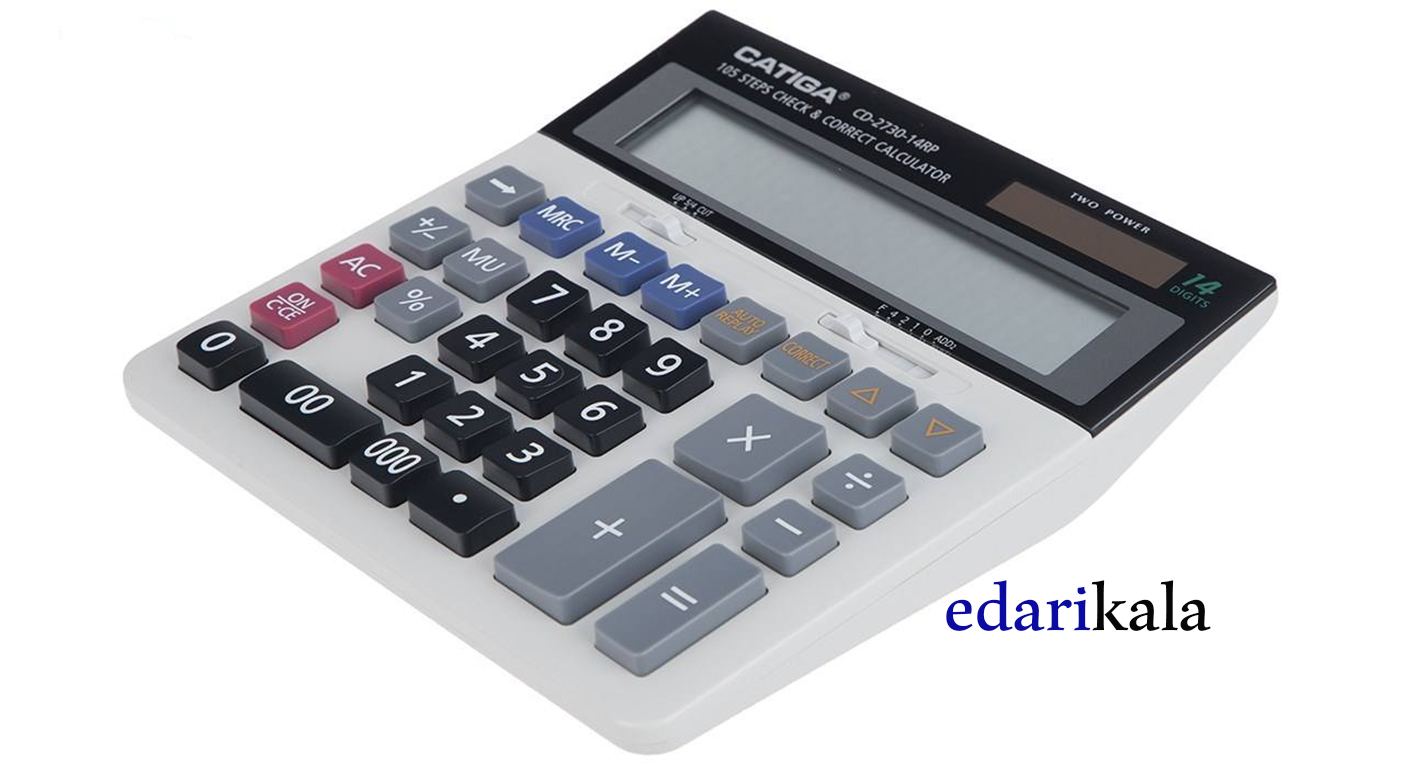 ماشین حساب 2730 کاتیگا داری کلید های M+، M- ، MU و MRC است در اینجا M به معنای Memory یعنی حافظه است که می توانید از حافظه ای که در اختیارتان است استفاده کرده محاسبات را با سرعت بیشتری پیش ببرید. عملیات محاسباتی مهم درحافظه ی دستگاه ذخیره می شوند و درنتیجه می توانید مطمئن باشید هیچ چیزی در محاسبات شما از یاد نخواهد رفت. این محصول از کلید های دو صفر و سه صفر بهره میبرد ، کلید ها با فاصله چند میلی متری از ماشین حساب قرار دارند و به راحتی لمس میشوند و همین امر کار کردن با دستگاه را آسان می کند.برق مصرفی دستگاه از طریق باتری یا پنل خورشیدی تامین می شود. طی روز و در محیط های پرنور می توانید بدون نیاز به باتری از ماشین حساب استفاده کنید و همین امر تاثیر بسزایی در افزایش طول عمر باتری دارد.
